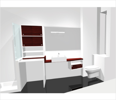 Spiegel über die gesamte Nischenbreite mit integrierter Stableuchte.